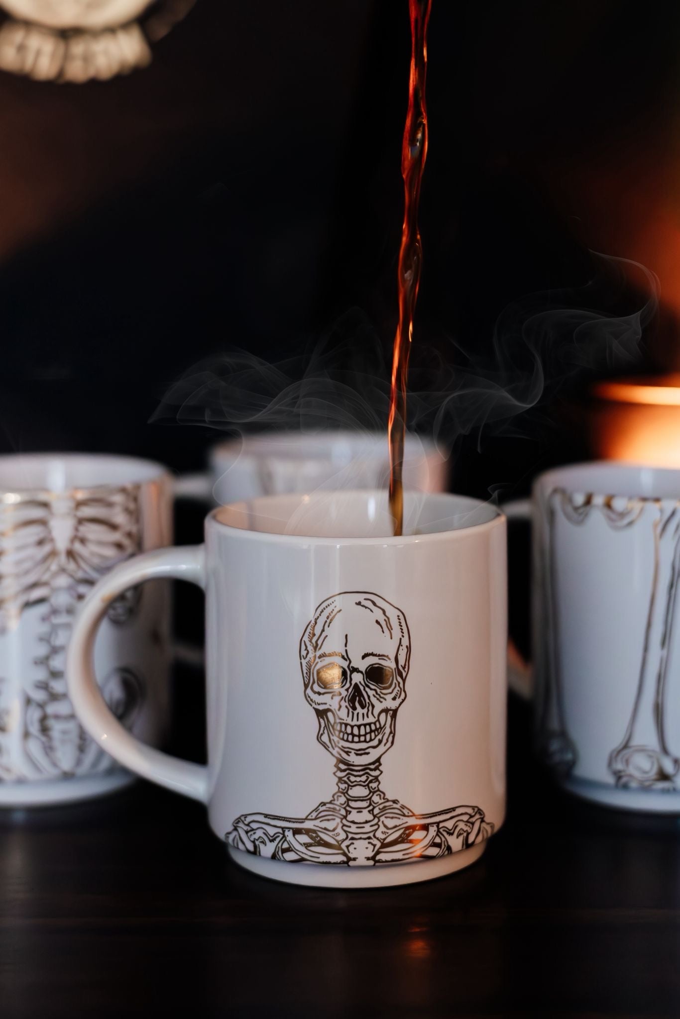 Limited Edition 24 Carat Gold Print Stacking Skeleton Mug Set in Coffin Gift Box